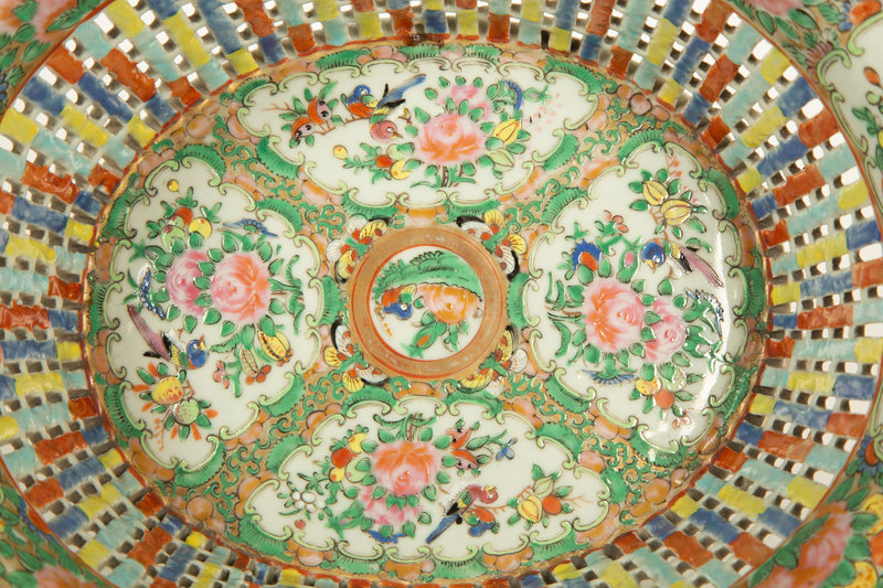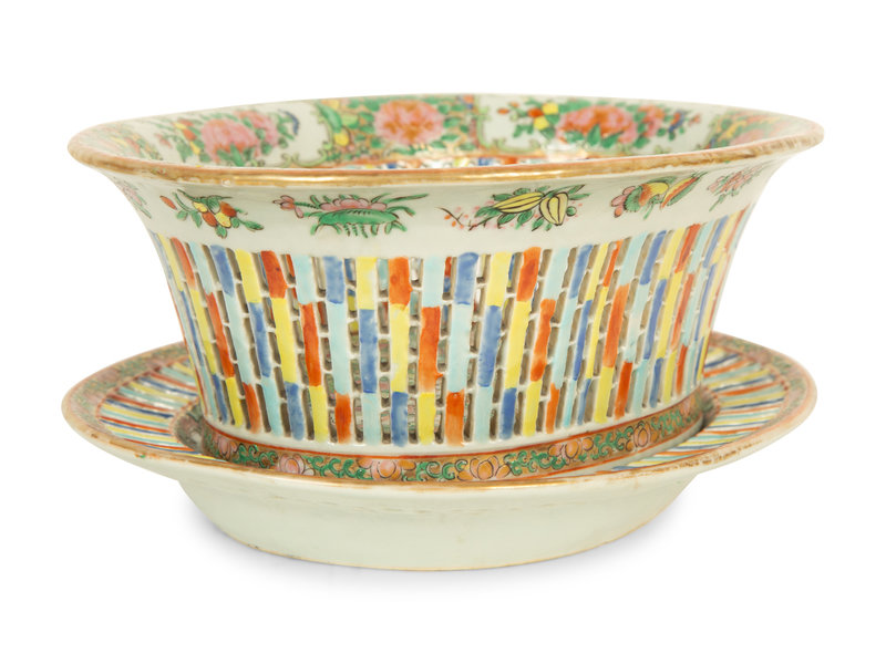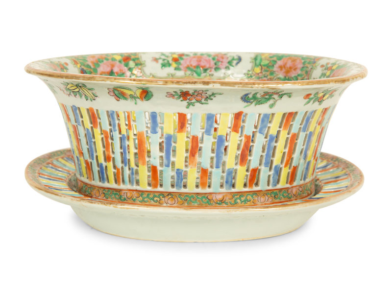 A Chinese Famille Rose Porcelain Basket and Underplate