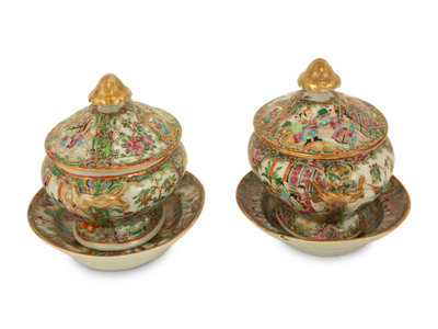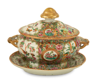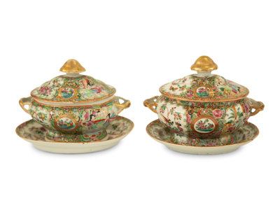 A Pair of Chinese Rose Medallion Porcelain Sauce Tureens