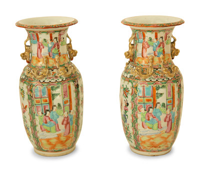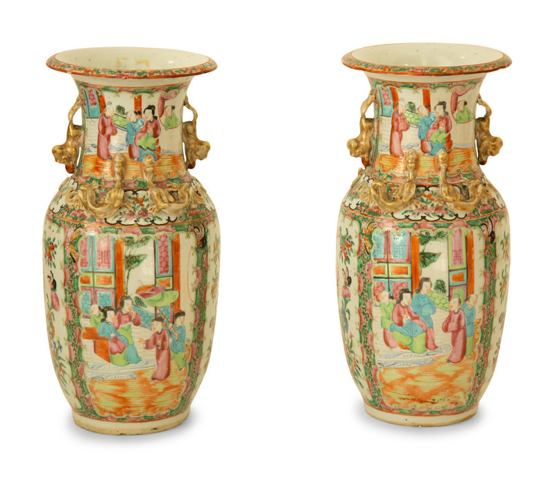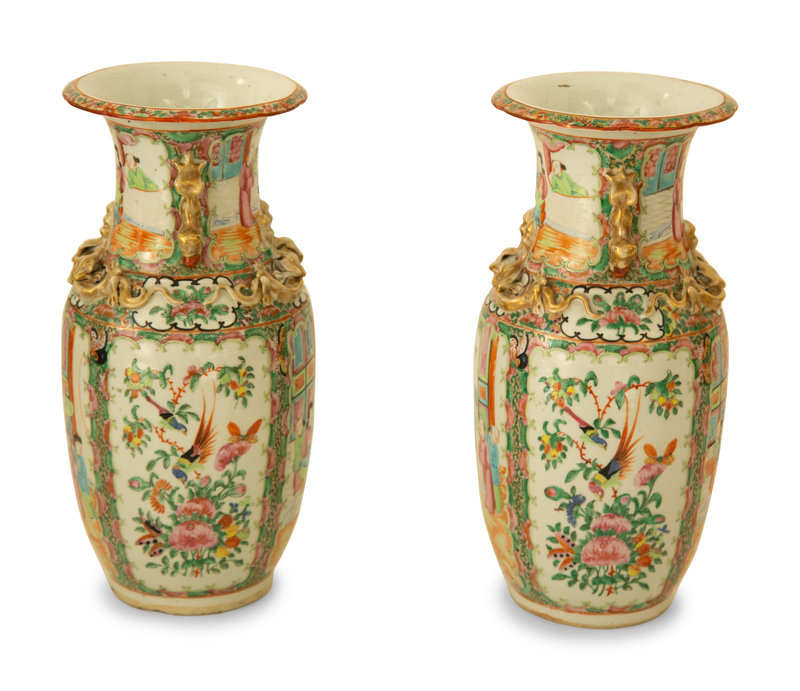 A Pair of Chinese Rose Medallion Porcelain Vases
