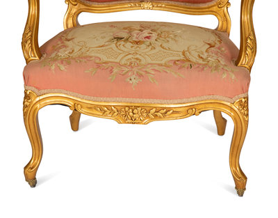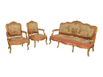 A Louis XV Style Three-Piece Carved Giltwood Salon Suite