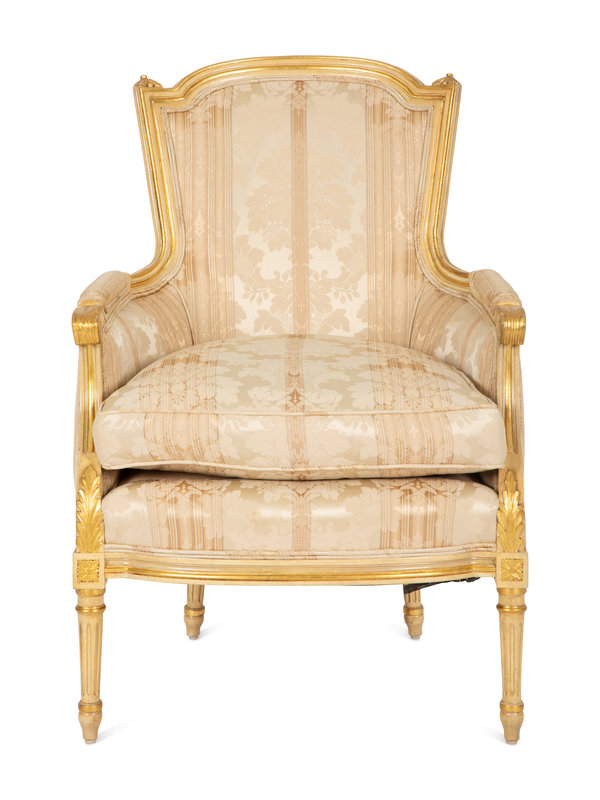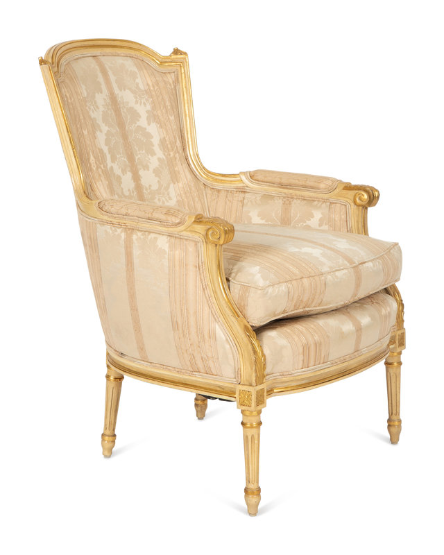 A Louis XV Style Painted and Giltwood Bergère