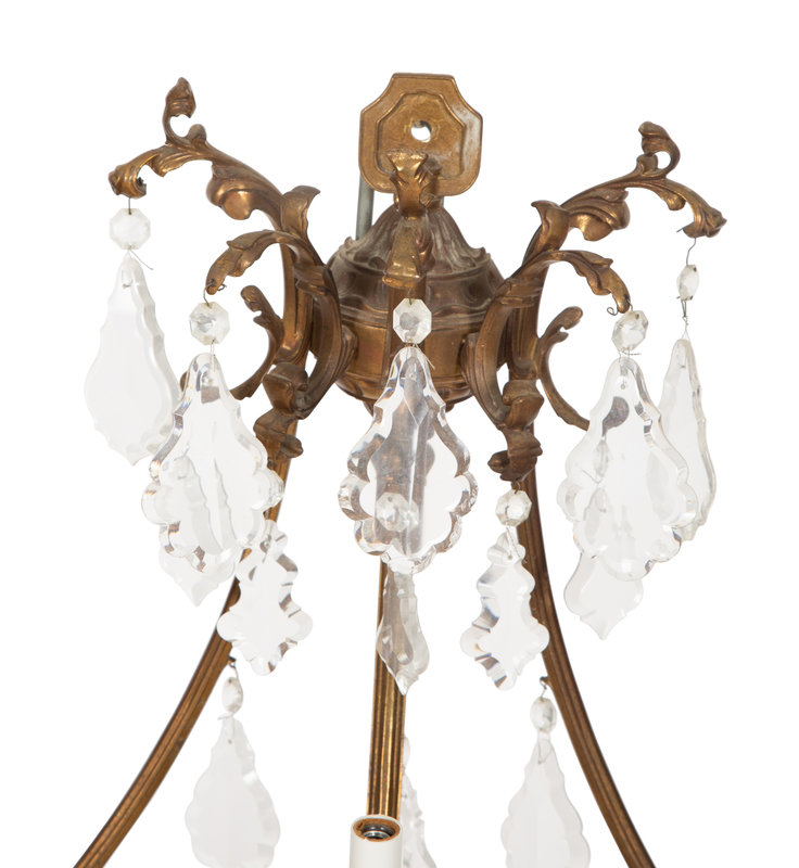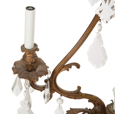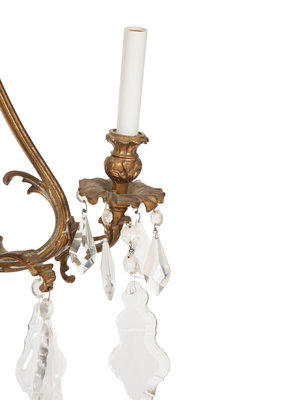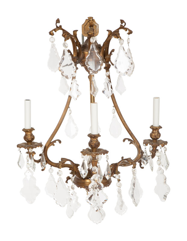 A Set of Six Louis XV Style Three- Light Gilt Bronze and Cut Glass Sconces