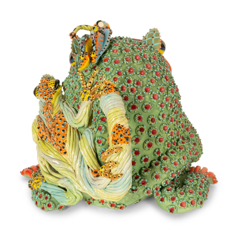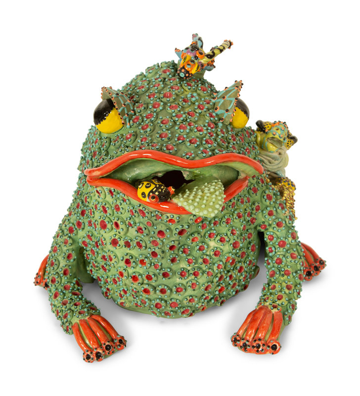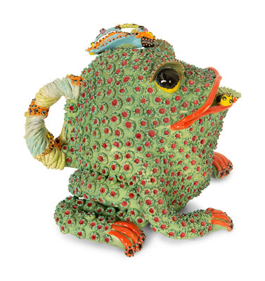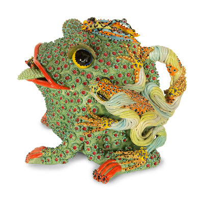 A Whimsical Painted and Glazed Ceramic Frog Pitcher