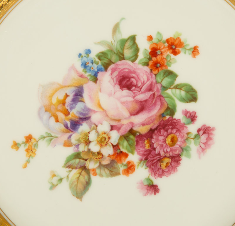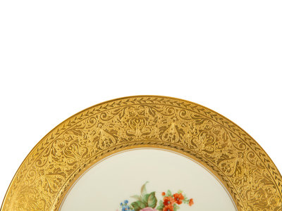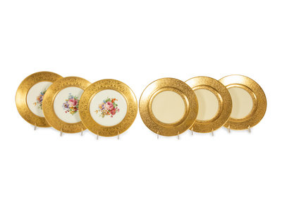 Two Sets of Continental Gilt-Decorated Porcelain Plates