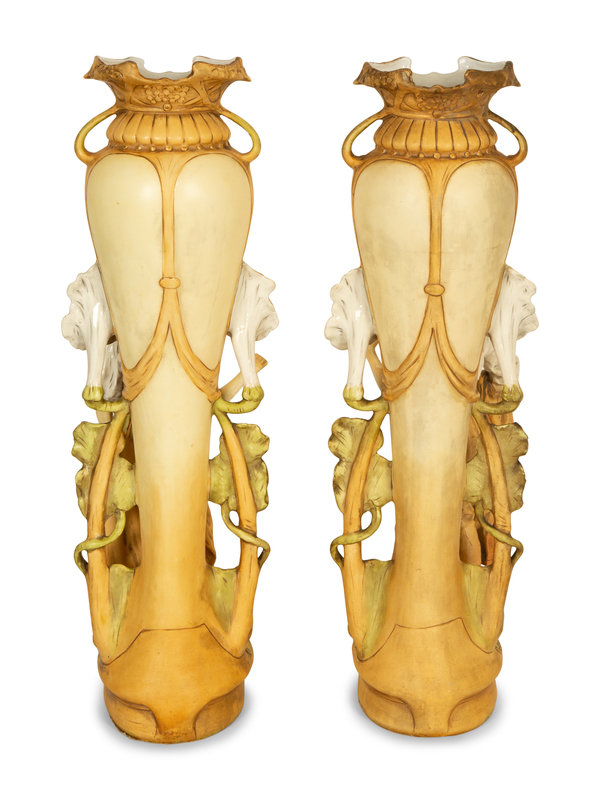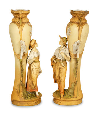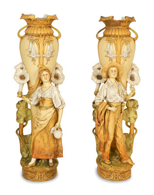 A Pair of Royal Dux Porcelain Figural Vases