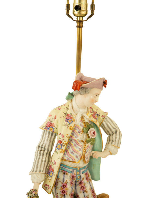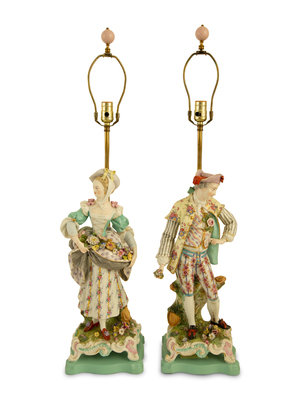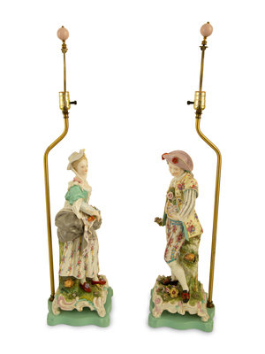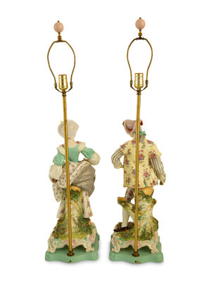 A Pair of Meissen Porcelain Figures Mounted as Table Lamps