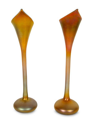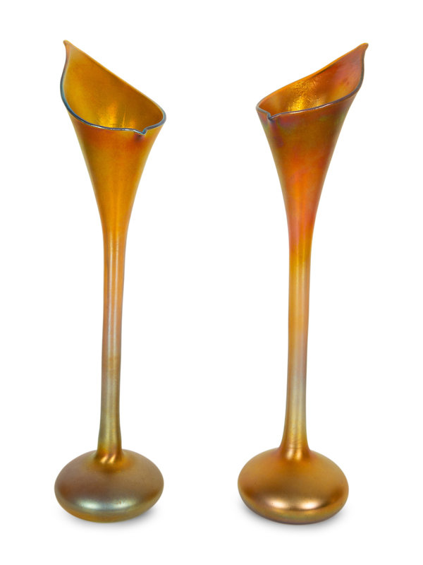 Pair of Quezal Iridescent Glass Vases