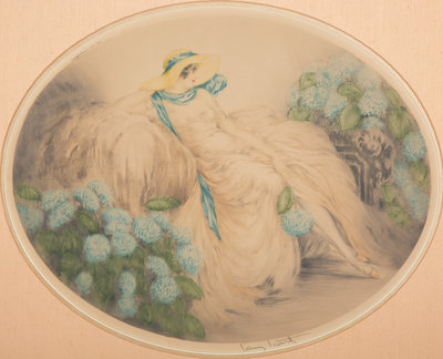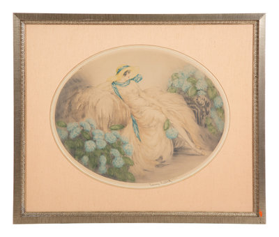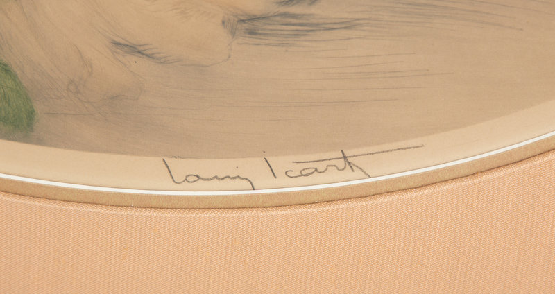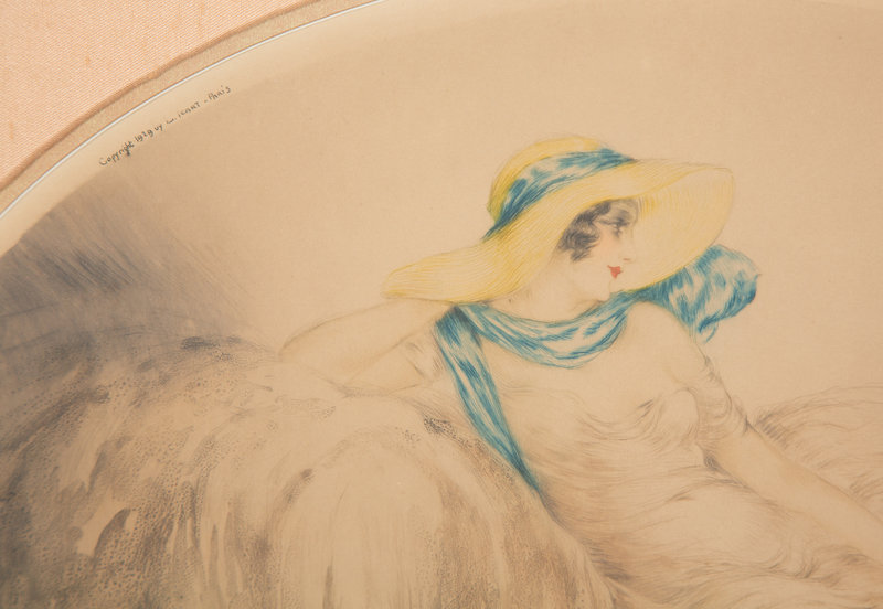 Signed in pencil Louis Icart lower center. Copyright 1929 Louis Icart Paris and with Blind Stamp.