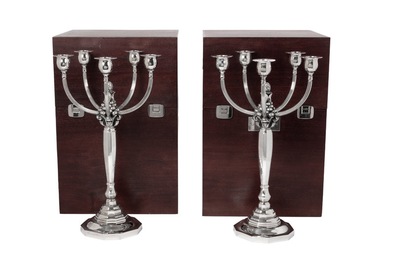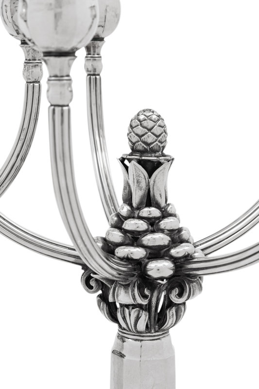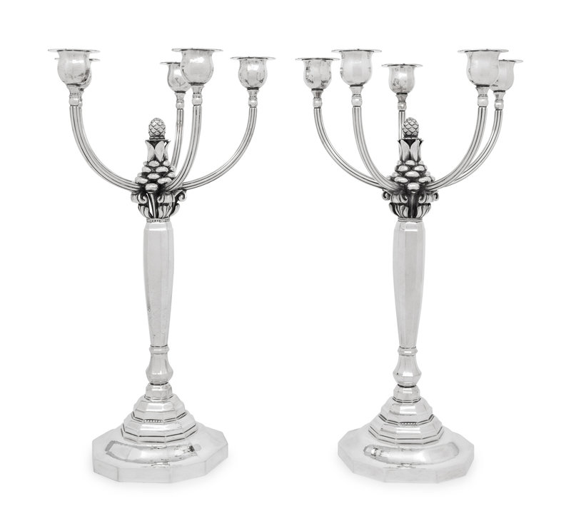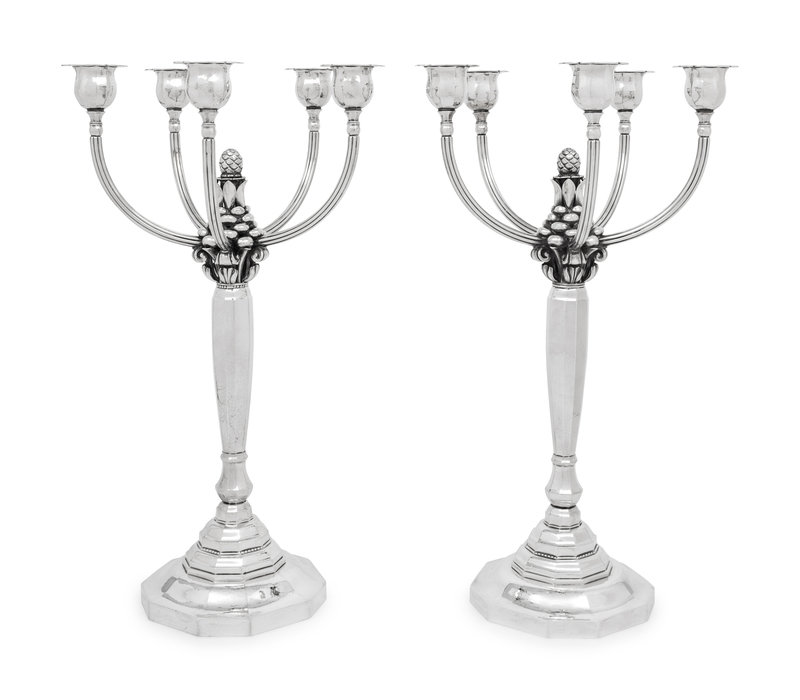 A Pair of Johan Rohde for Georg Jensen Silver Five-Light Candelabra
