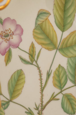 decorated with various botanicals to the body and bottom of bowl, with Latin identifications for each to the underside.