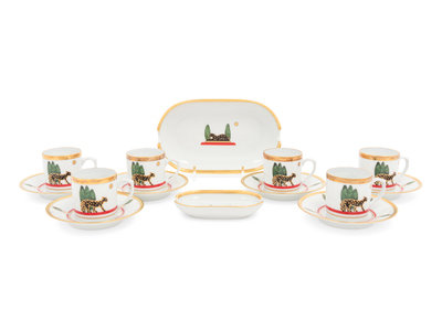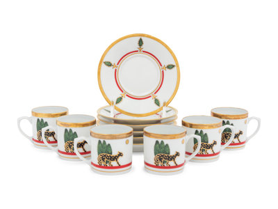 A Set of Six Cartier La Maison de Louis Porcelain Coffee Cups with Saucers
