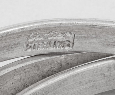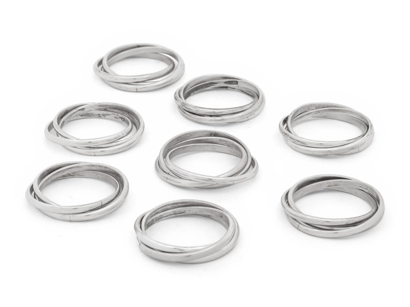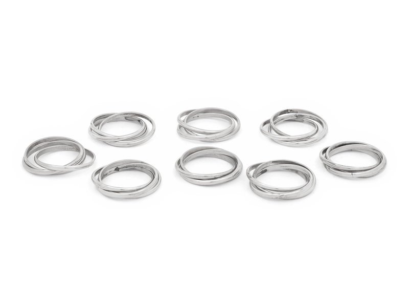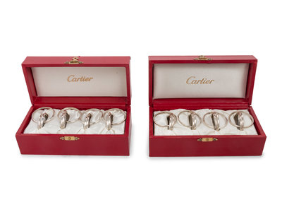 Two Cased Sets of Four Cartier Trinity Silver Napkin Rings