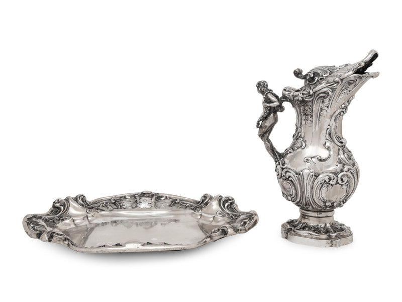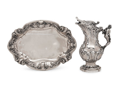 An Italian Art Nouveau Figural Water Pitcher with Tray