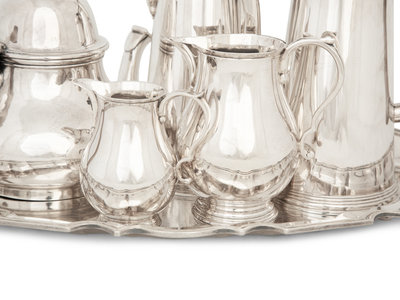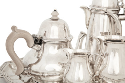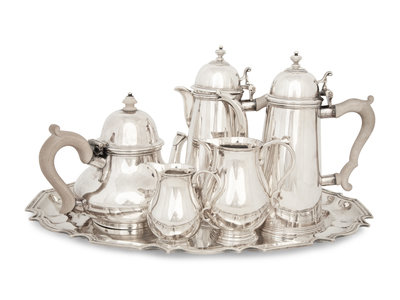 An English Queen Anne Style Silver Five-Piece Tea and Coffee Service