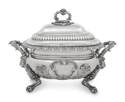 A William IV Silver Tureen with Cover and an American Coin Silver Soup Ladle