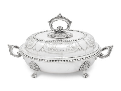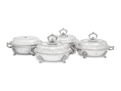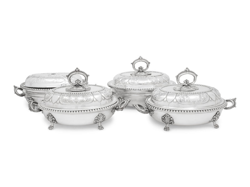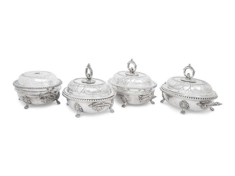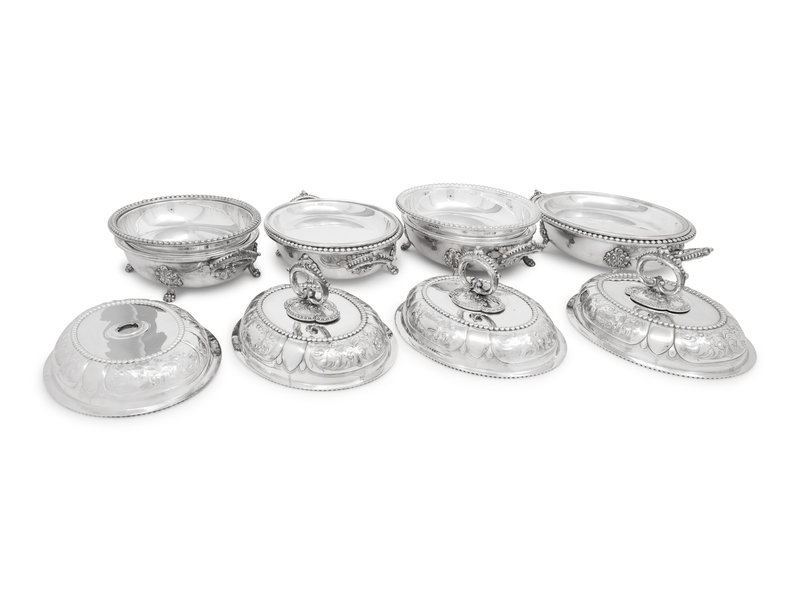 A Set of Four Victorian Silver-Plate Oval Vegetable Dishes with Covers and Liners
