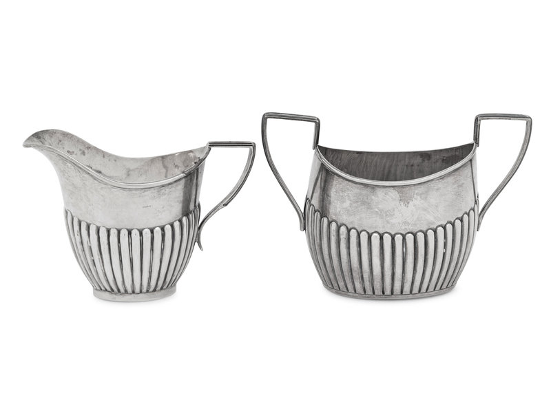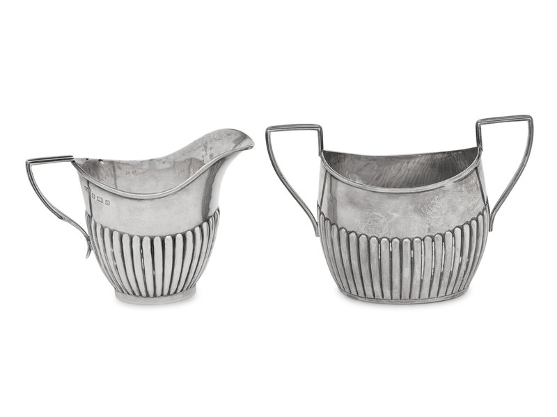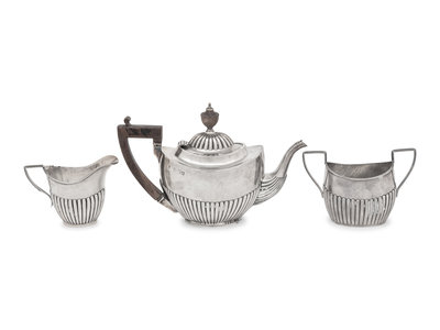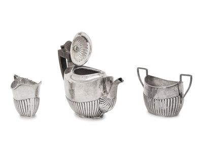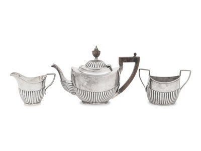 An Assembled Edwardian Silver Three-Piece Bachelor's Tea Service