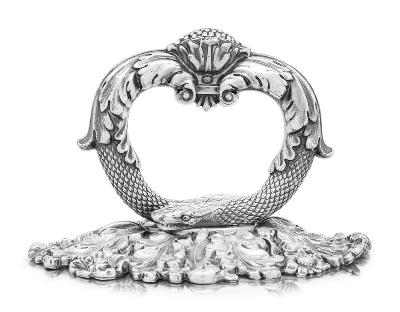 the dome having a snake-form handle with an engraved coat of arms for the Austen-Ricketts family to the body.