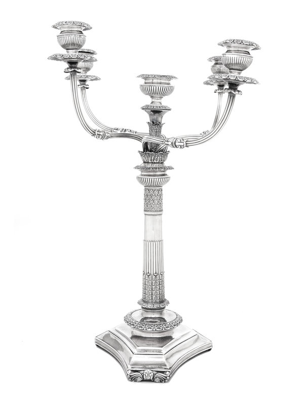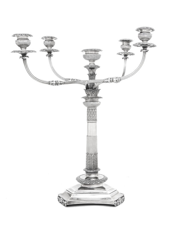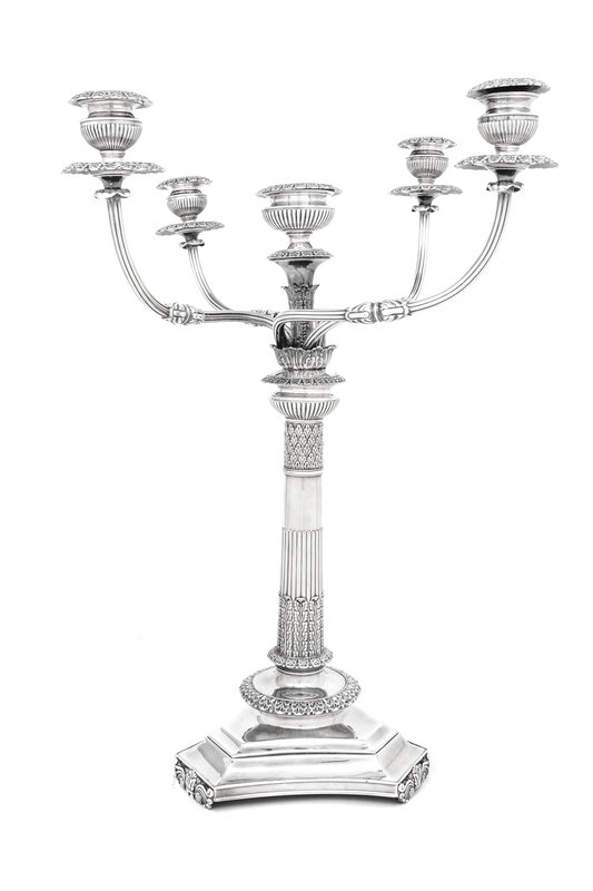 A Large English Silver-Plate Five-Light Candelabrum