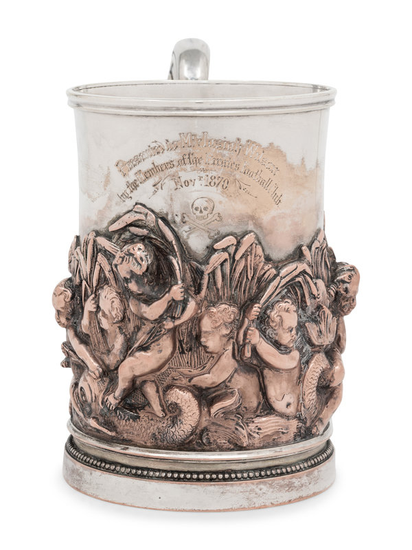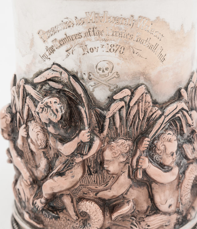 with engraved presentation inscription to body reading Presented to Mr. Josiah Wilson/ by the Members of the Pirates Football Club/ Novr. 1870.'
