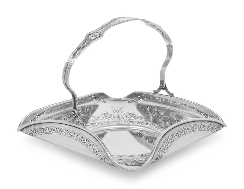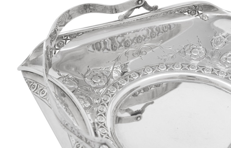 An English Silver Cake Basket and an American Silver Sandwich Plate