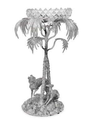 A Silvered Metal and Cut Glass Centerpiece