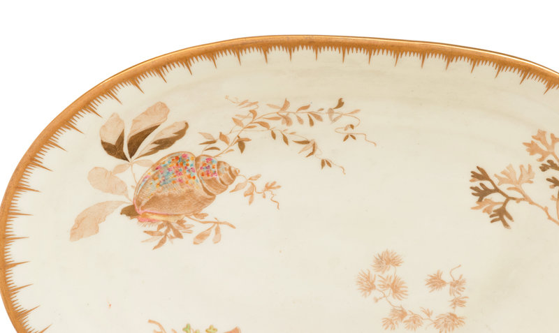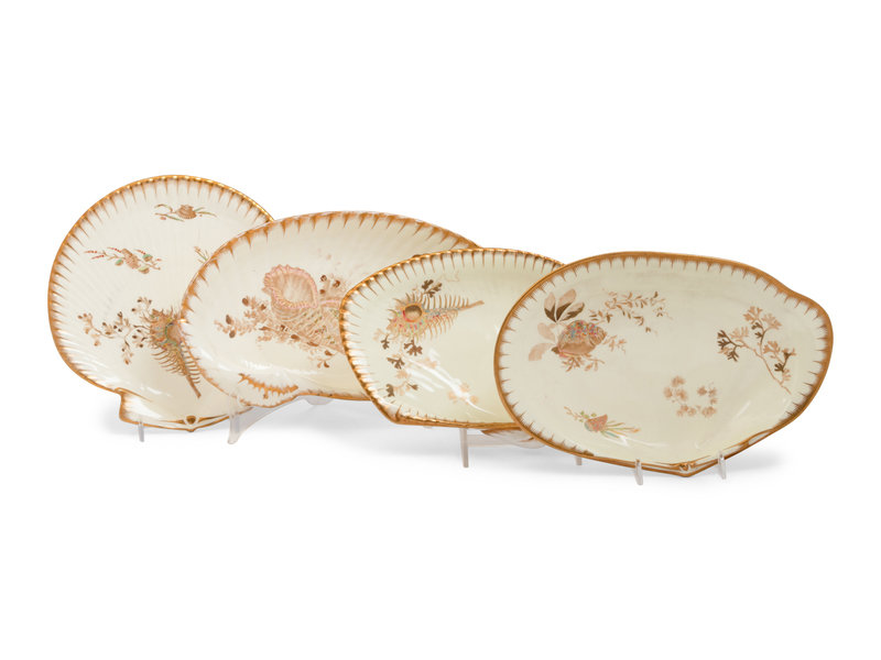each of shell form, comprising sixteen dessert plates, two oval plates, three dishes and one larger dish; 22 items total.