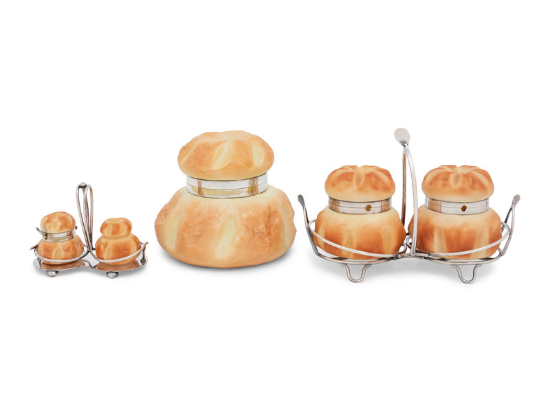 A Group of Royal Worcester Brioche à Tête Porcelain Table Articles