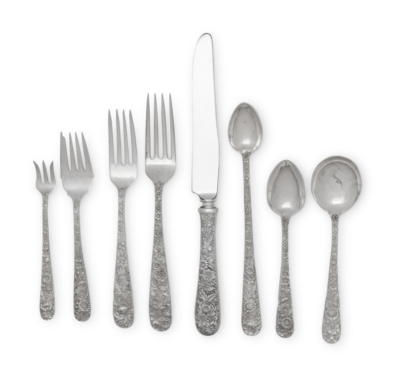 A Large S. Kirk and Son Repousse Silver Flatware Service