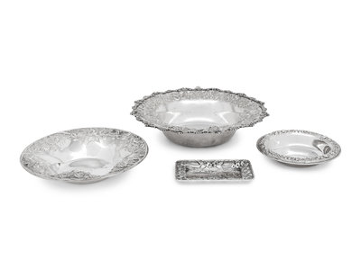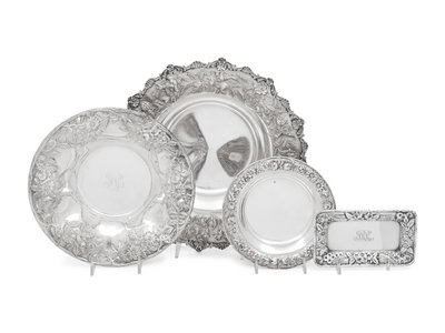 A Group of Four S. Kirk and Son Repousse Silver Table Articles