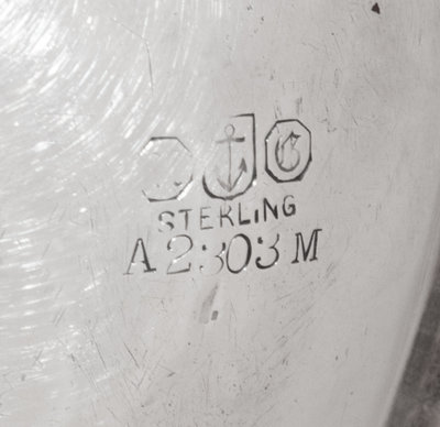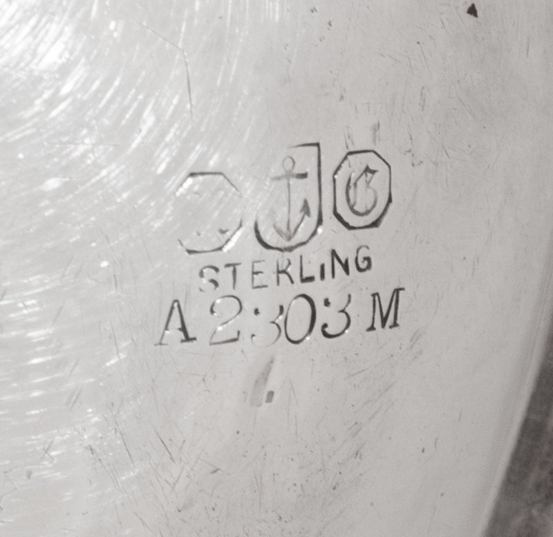 the base of the bowl with an engraved script monogram.