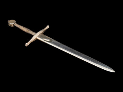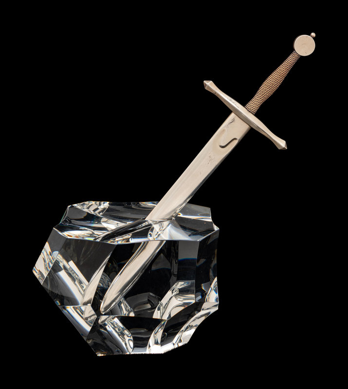 the sword marked 'Sterling', '18KS' and 'Steuben'