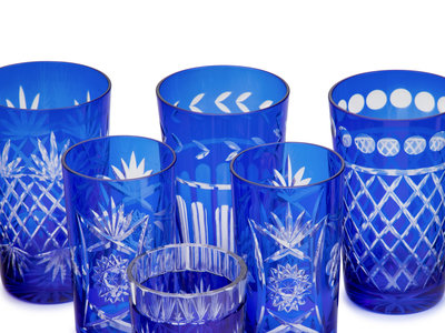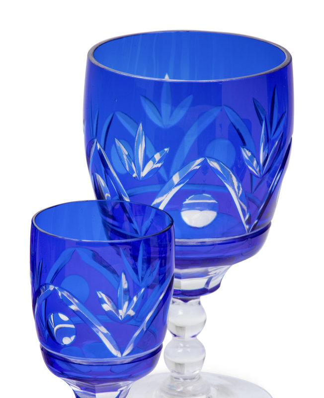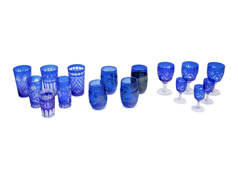 A Group of Bohemian Blue Cut-to-Clear Glass Drinkware