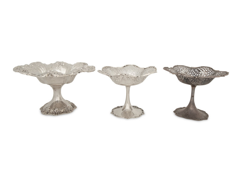 comprising a monogrammed pair by Shreve, Crump & Low Co., and a Francis I example by Reed & Barton.