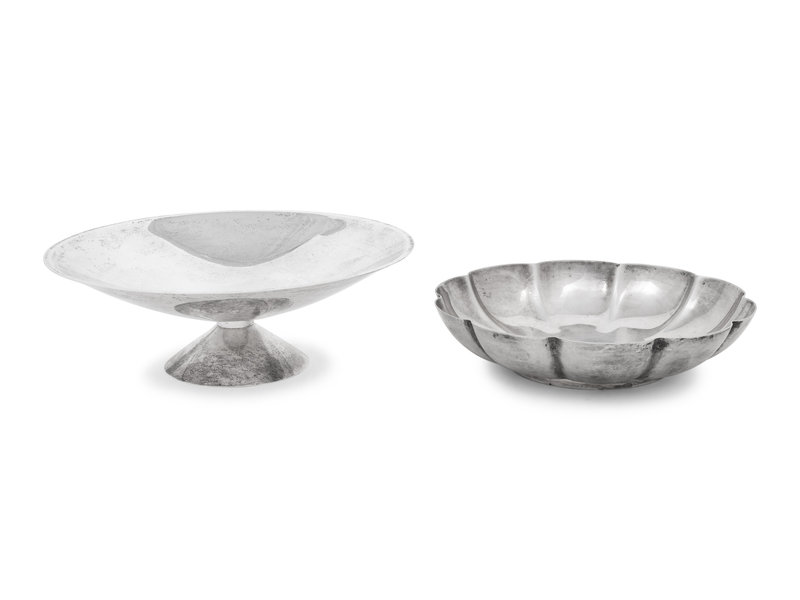 comprising a scalloped bowl and a fruit stand.