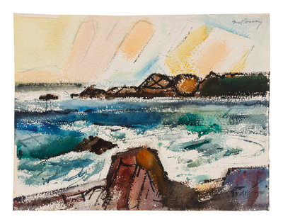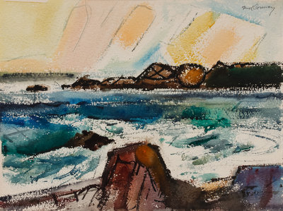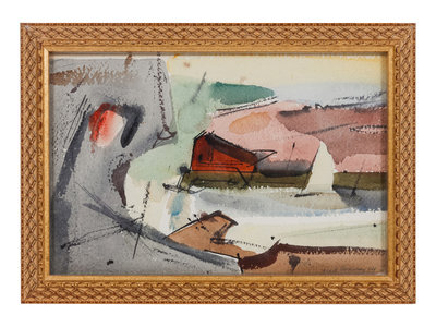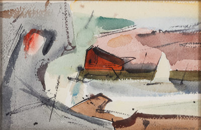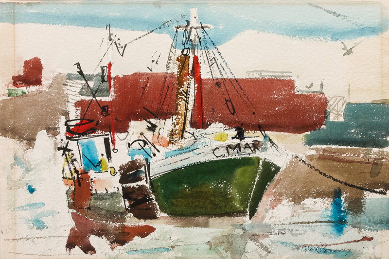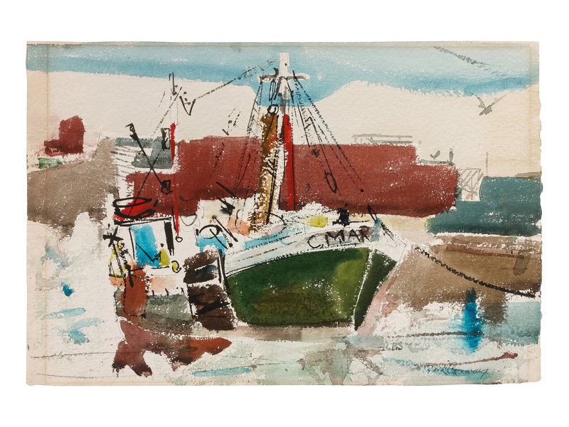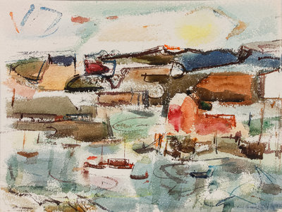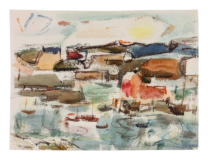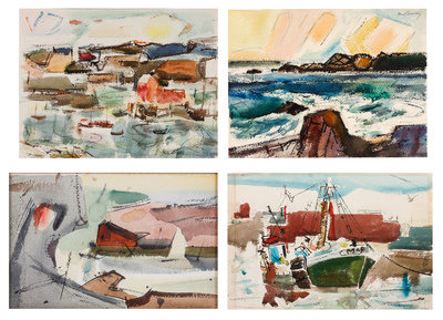 Four works: Sweden, 1951; Beach Scene; Rockport; and Harbor Scene