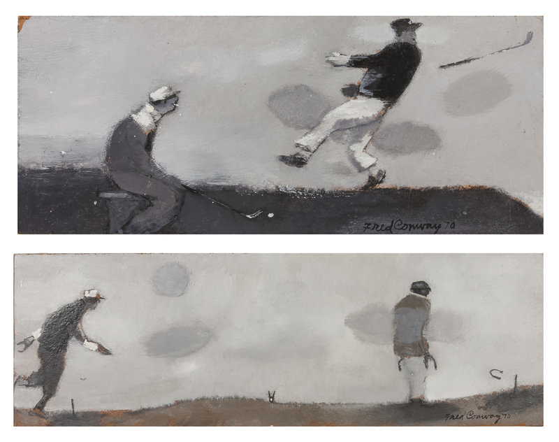 Two works: Men Playing Horseshoes and Men Playing Golf