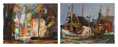 Two works: Harbor scene and Village scene
