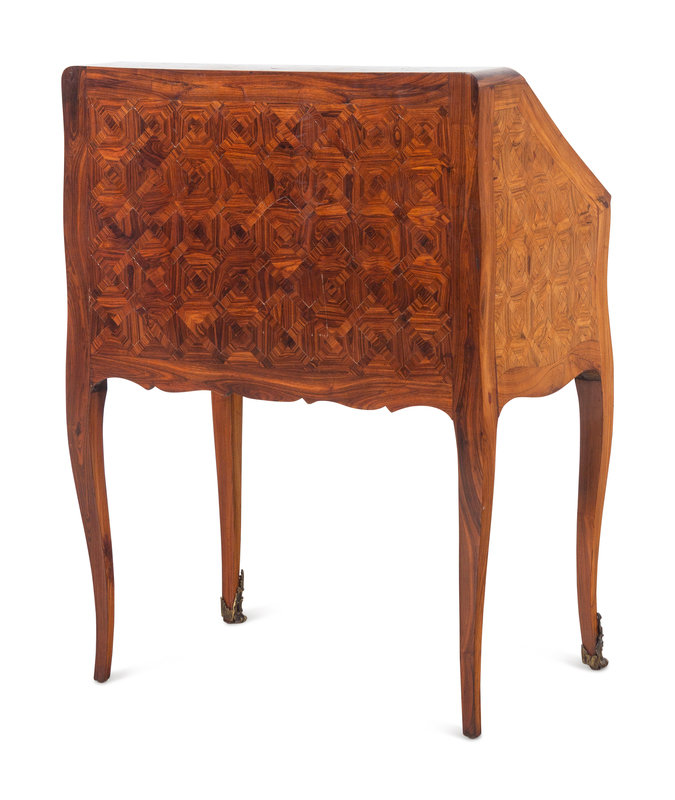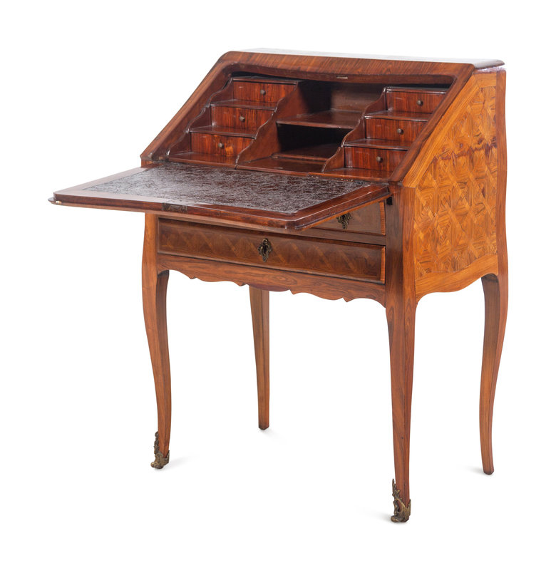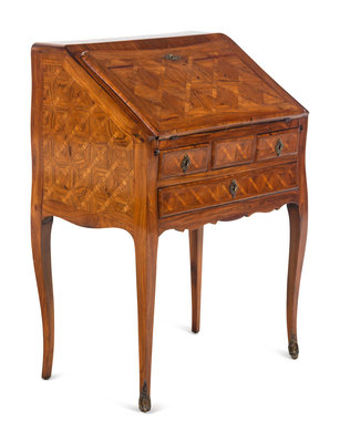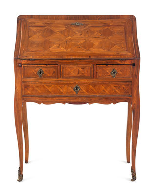 A Louis XV Style Tulipwood and Parquetry Slant-Front Bureau