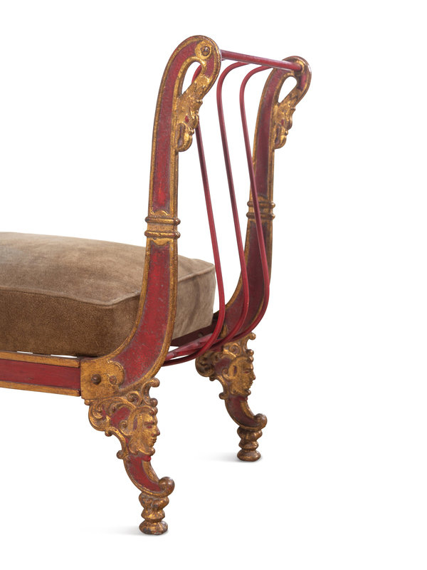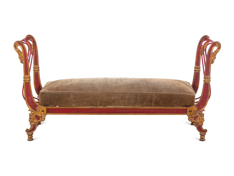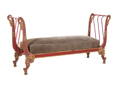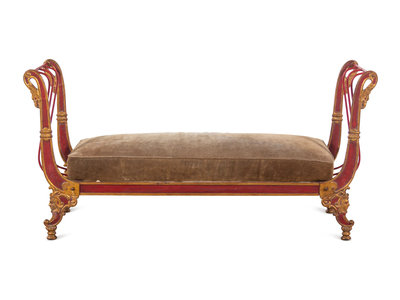 An Empire Style Painted and Parcel Gilt Metal Bench