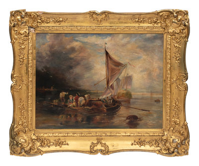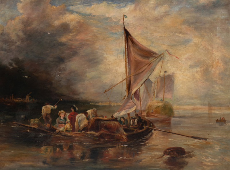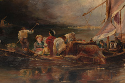 Figures in a Low Boat Along the Shoreline