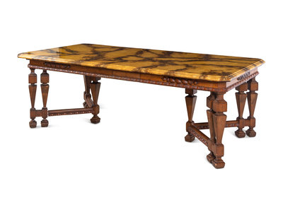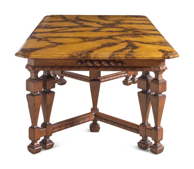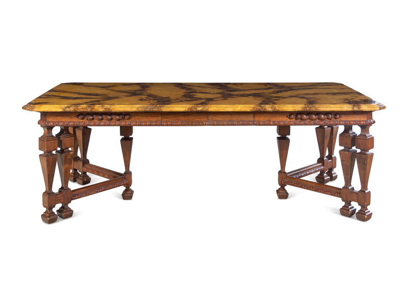 A Renaissance Revival Style Carved Walnut Faux Marble-Top Dining Table