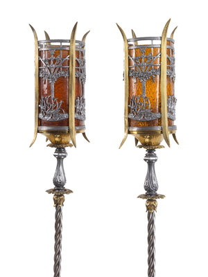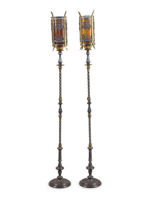 A Pair of Iron and Brass Floor Lamps