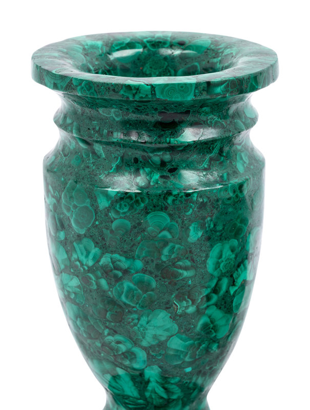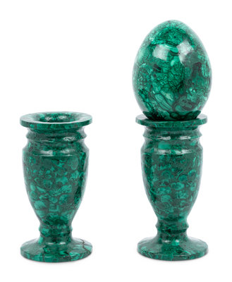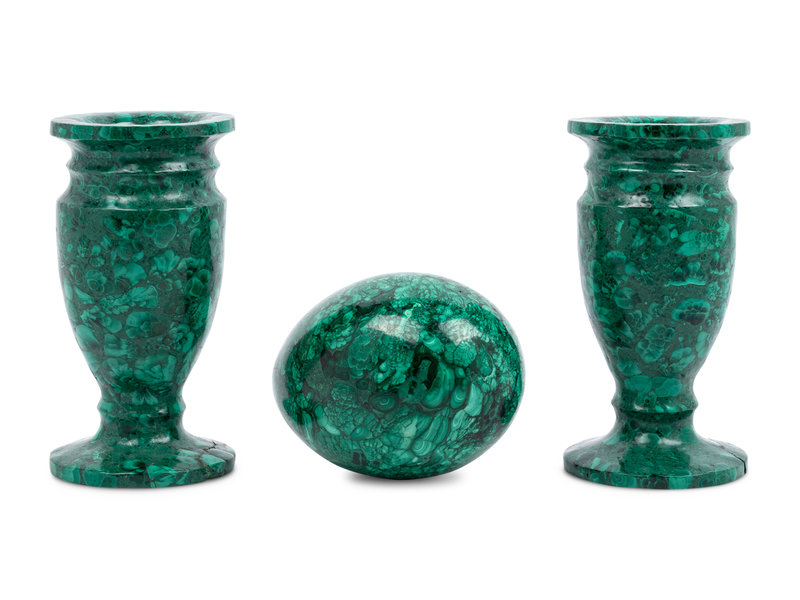 A Pair of Malachite Veneered Vases and a Malachite Egg