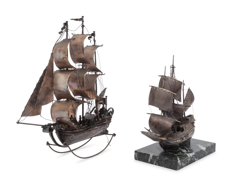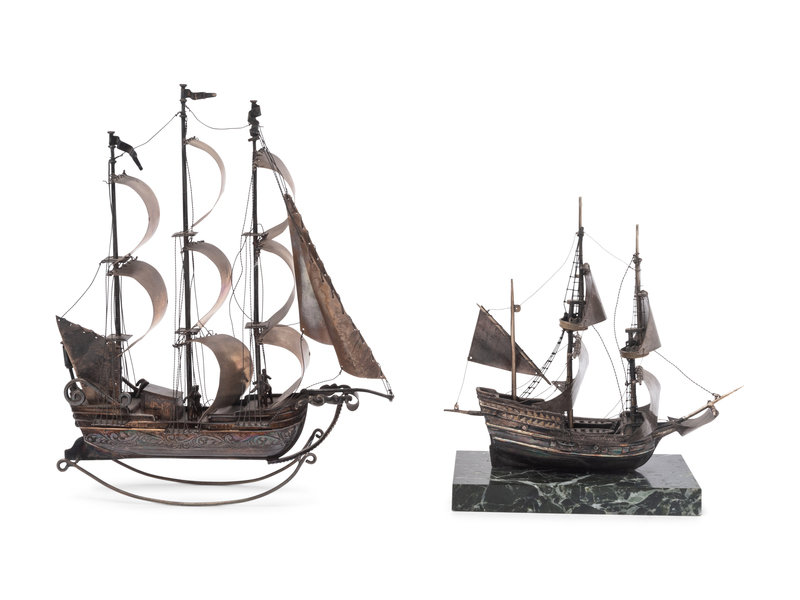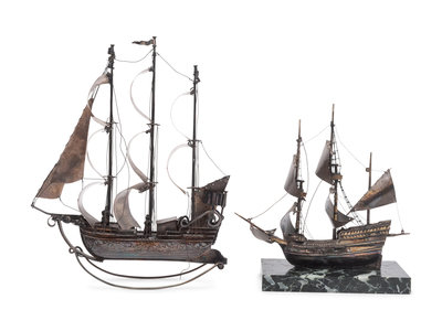 Two Dutch Silver Models of Galleons