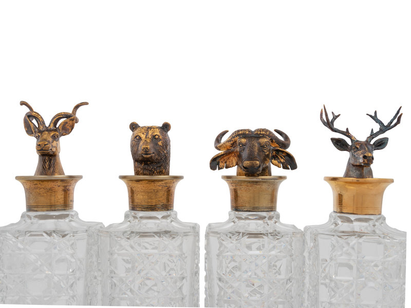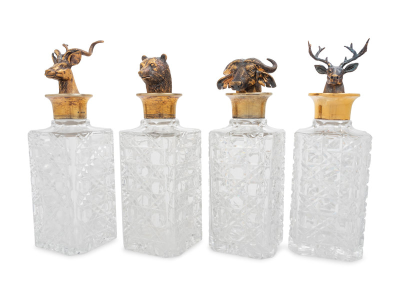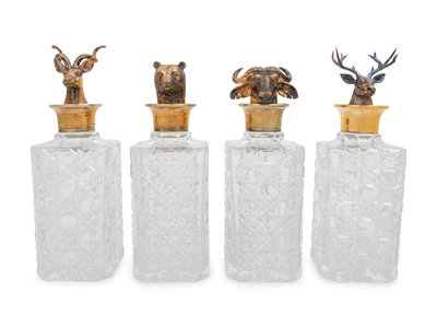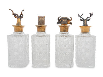 A Set of Four English Silver Mounted Cut-Glass Decanters