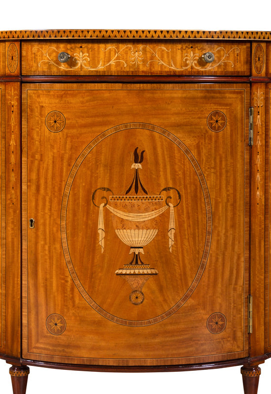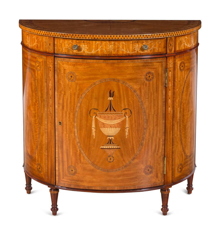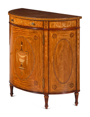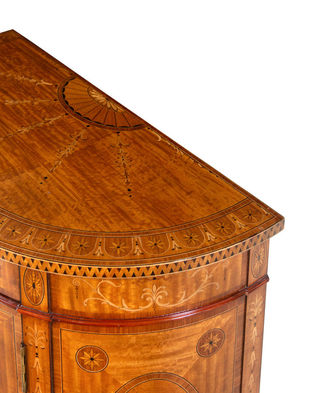 An Adam Style Satinwood and Marquetry Demilune Cabinet