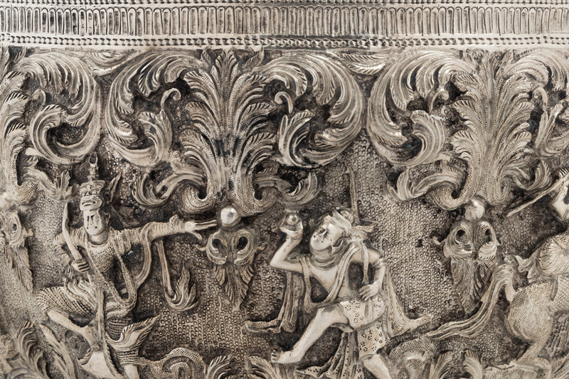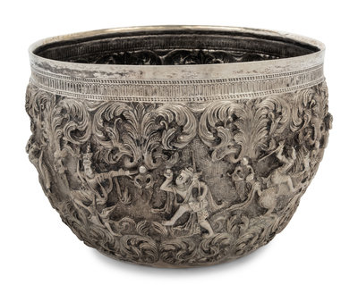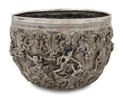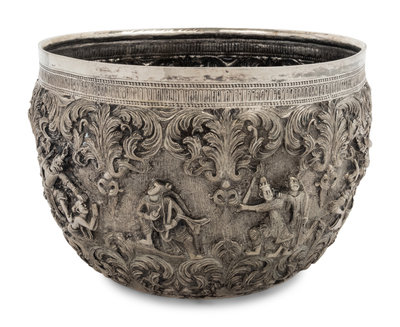 A Burmese Silver Repoussé Thabeik Bowl