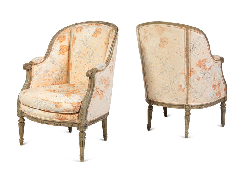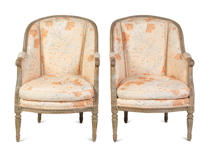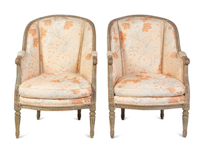 A Pair of Louis XVI Style Gray-Painted Bergères