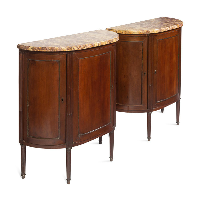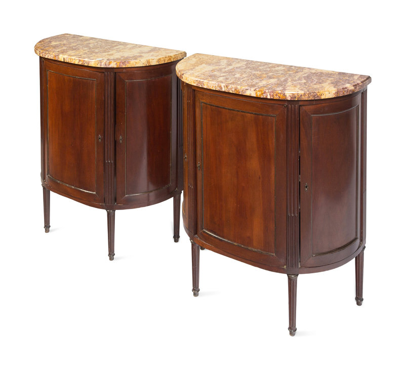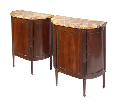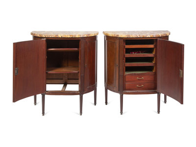 A Pair of Louis XVI Style Mahogany Marble-Top Cabinets